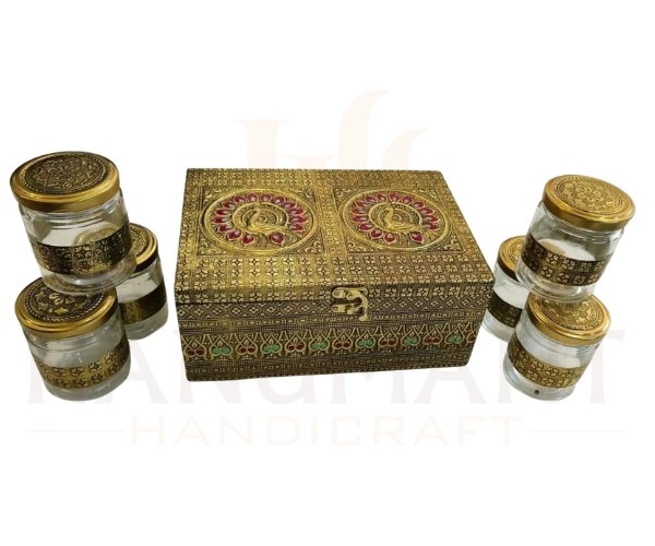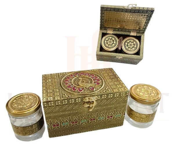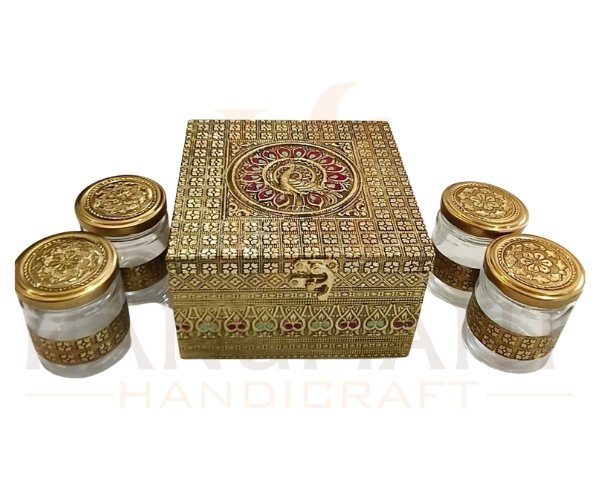Jar Mina Dry Fruit Box – Gold Finish Decorative Gift Box With Glass Jar