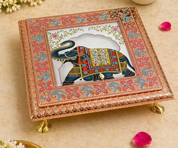 It is used for placing idols, kalash, diya, pooja thali, and decorative items during rituals.