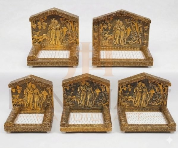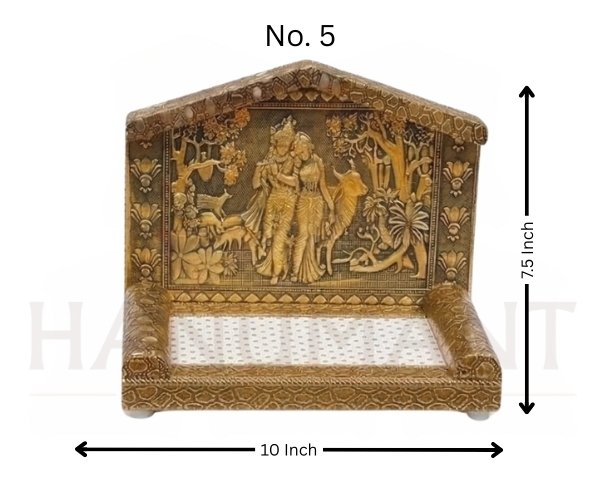 Bring divine elegance to your pooja space with this beautifully designed Radha Krishna God Singhasan for home temple. The singhasan features a detailed embossed Radha Krishna artwork with traditional motifs that reflect Indian spiritual craftsmanship.